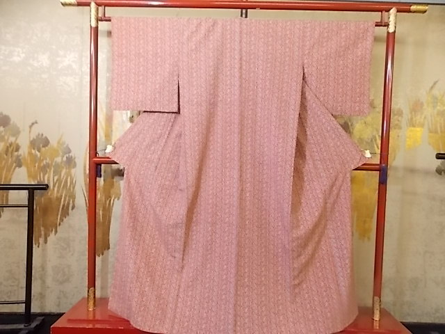 > きもの今昔4696 合繊きもの 広衿袷仕立て ポリエステル100% 煉瓦色地草花図案模様 身丈155cm