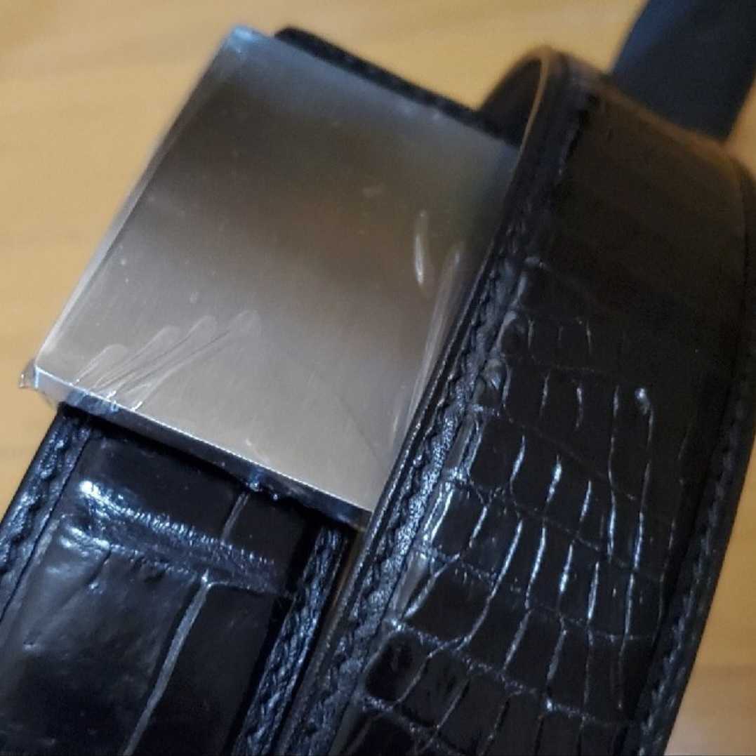- 在庫限り クロコダイル 腹革 ベルト 高級バックル マット仕上げ 幅3.8cm