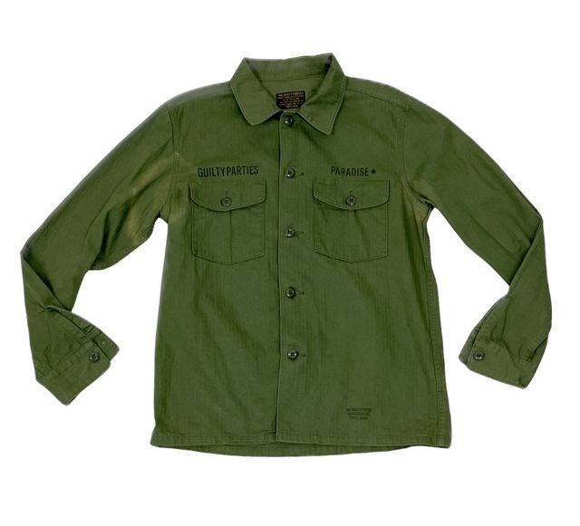 > ワコマリア WACKO MARIA GUILTY PARTIES ミリタリー ユーティリティシャツ ヘリンボーン サイズL [l-0547]