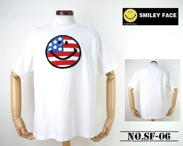 - 【送料無料! 37%FF】SMILEY FACE スマイリーフェイス ワイドシュルエット サガラ刺繍Tシャツ SF-06 OFF WHITE_Lサイズ