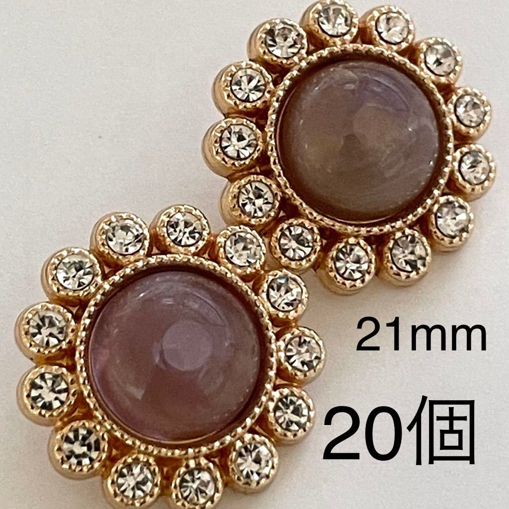 - 金属 合金 ボタン 20個 21mm ラインストーン ゴールド 濃い パープル ガラス カボション パーツ マーブル 花 フラワー