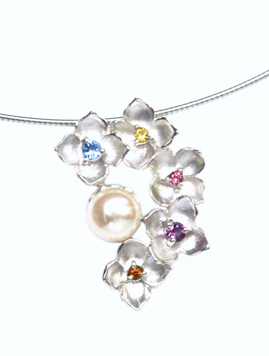 - SV925パール フラワーペンダント・オメガネックレス付き(オレンジピンク)