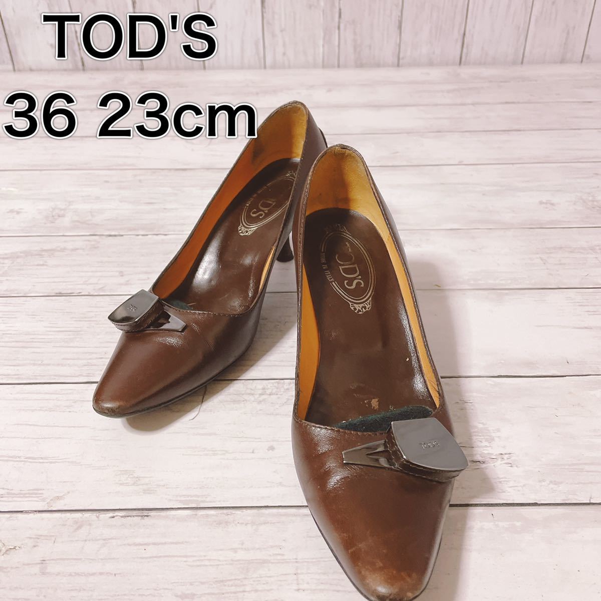 - H1453 TOD'S トッズ ブラウン 36 23cm 茶 金具 スタッズ