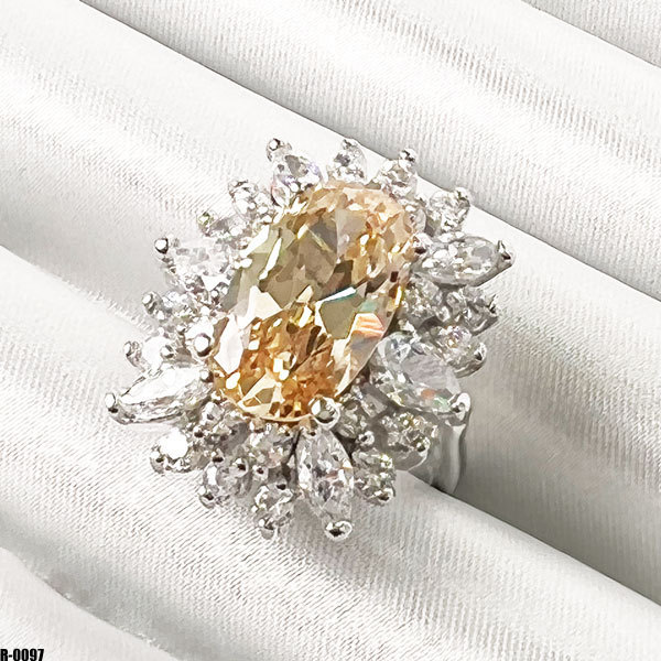 > 送料無料!! 大粒 イエロー ストーン 8号 キュービック ジルコニア CZダイヤモンド デザインリング 指輪 アクセサリー ◇R-0097