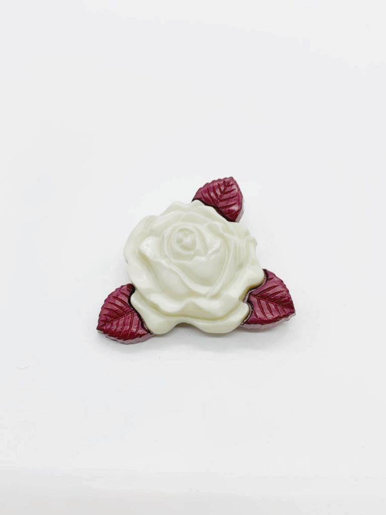 - 【美品】ヴィンテージ プラスチック 薔薇 ブローチ ローズ 昭和 レトロ 深紅 白