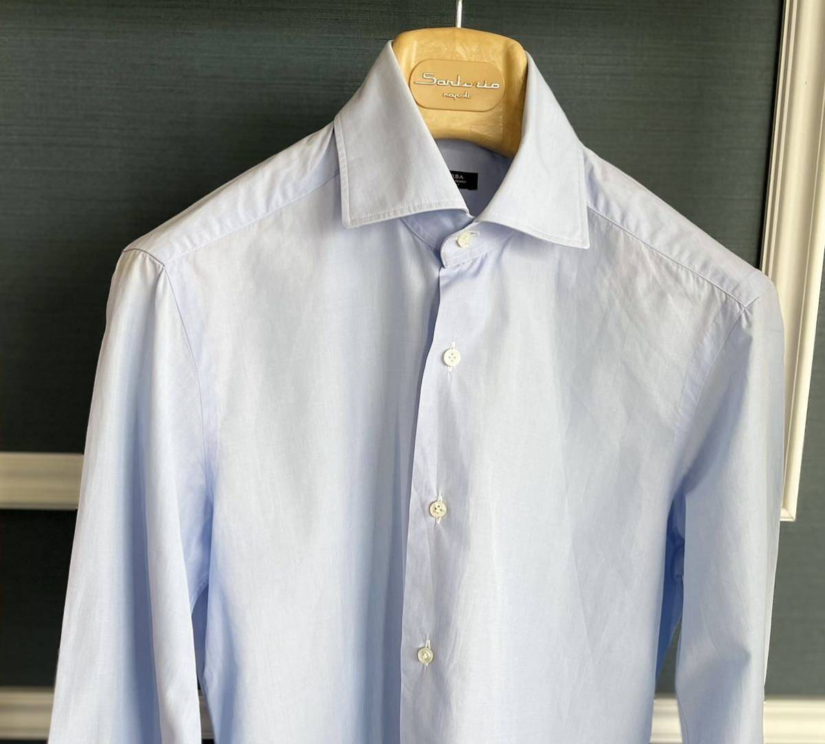 - バルバ(BARBA) 長袖シャツ、コットン100%、サックスブルー、ネックサイズ36、オーダー品、本物