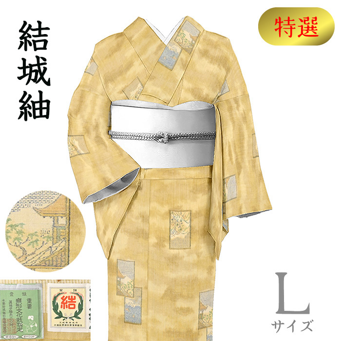 > 着物だいやす 265■本場結城紬■奥順謹製「結」証紙付 地機 飛び亀甲 カルタ 香色 特選 身長サイズ:L【送料無料】【中古】