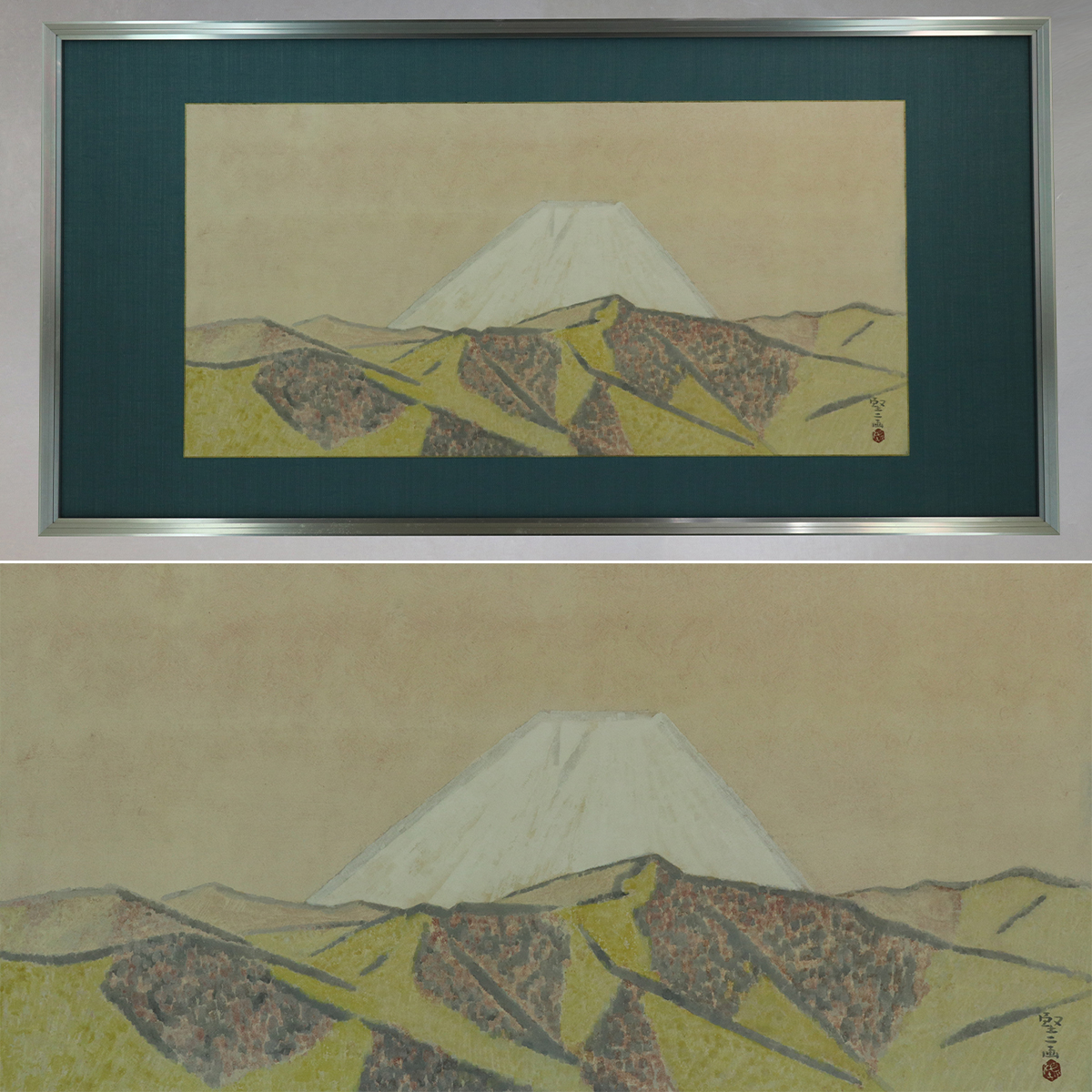 - 【真作】吉岡堅二【富士】◆紙本◆アクリル入◆額 u10001