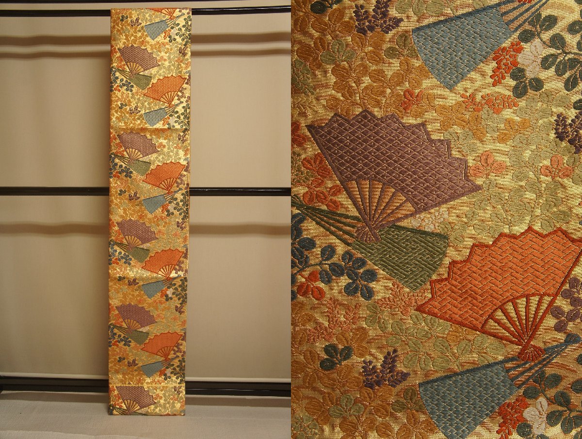 - 特選金箔地本唐織扇面秋草模様未着用袋帯[O14270]