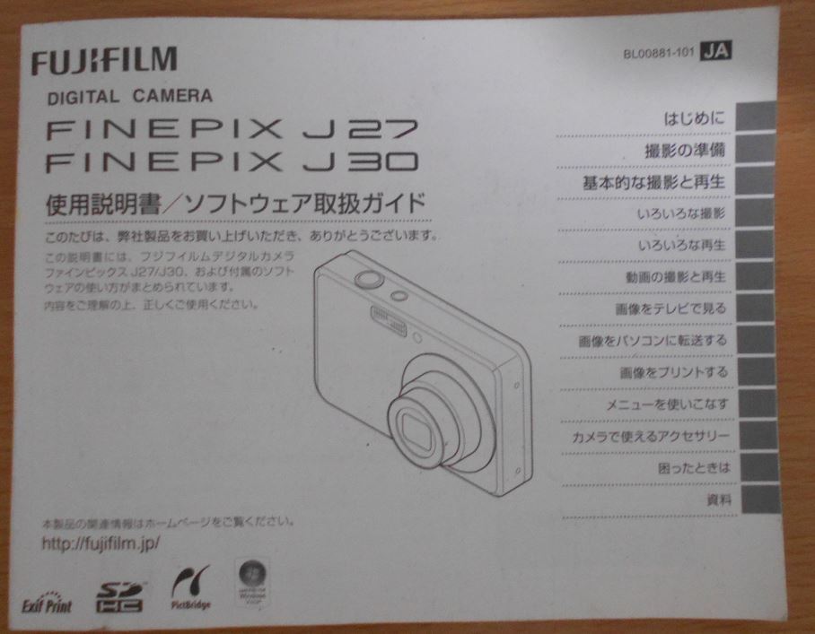 > 取扱説明書 FINEPIX J27 J30 使用説明書 FUJIFILM DIGITAL CAMERA ソフトウェア取扱ガイド デジタルカメラ 中古 1冊