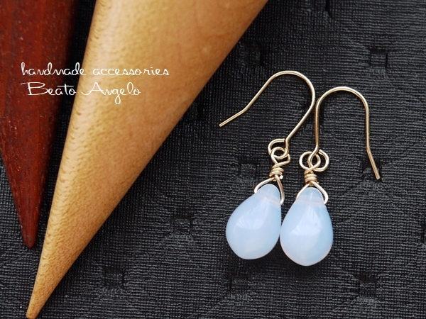 > ■+angelo+K14GF チェコドロップのプチピアス(p-451)ミルキーサファイア 一粒 ライトブルー イヤリング