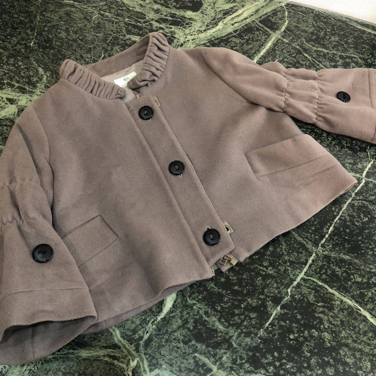 > 【美品】en ESTNATION★エストネーション ショート丈ジャケット Sサイズ程度 グレージュ フレア袖 長袖 アンゴラ ウール レディース