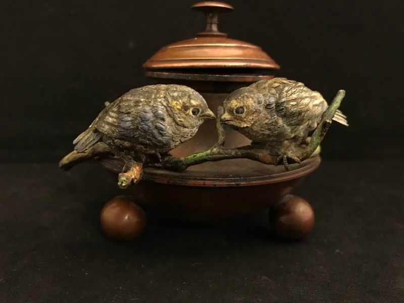 - ヴィエナ・ブロンズ 鳥 つがい ペア インクボトル アンティーク