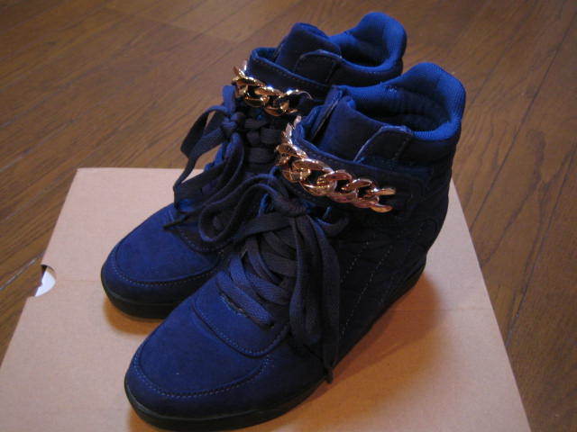 - ■キルティング風 チェーン付 インヒールスニーカー ロイヤルブルー系 サイズM■