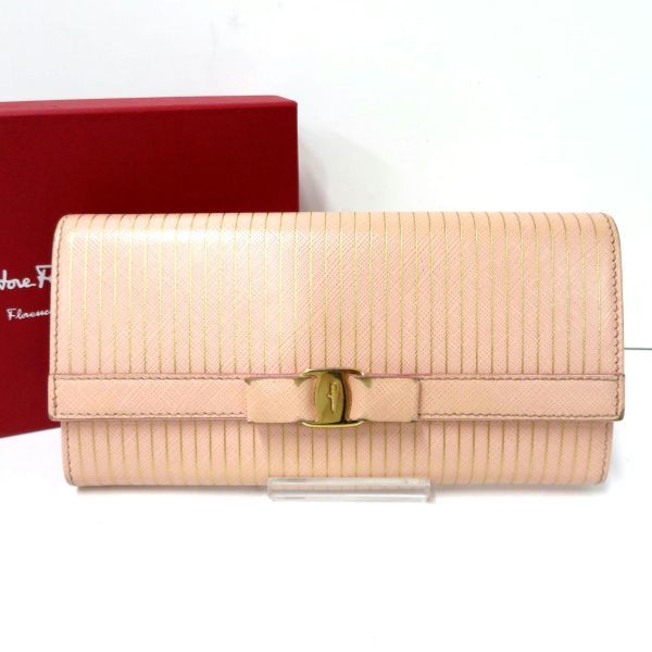 - Ferragamo/フェラガモ ヴァラ 2つ折り長財布 JL-22 C593 0675305 ピンクベージュ系