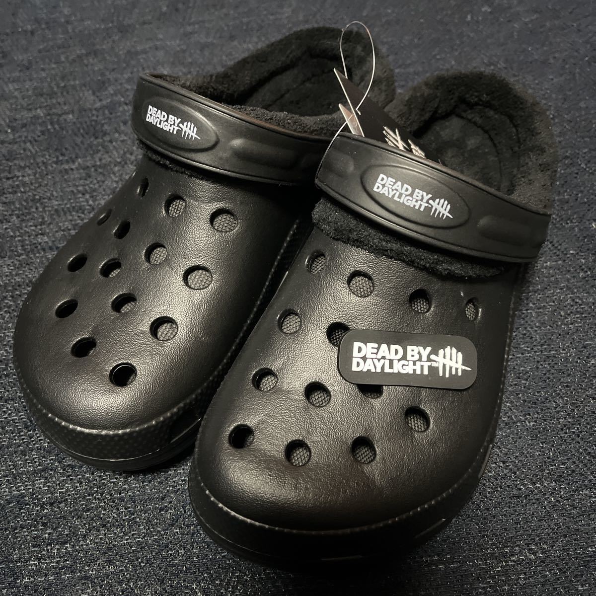 - 未使用 新品 DEAD BY DAYLIGHT デッドバイデイライト スリッパ ブラック タグ付き Mサイズ クロックス crocs タイプ 内側起毛