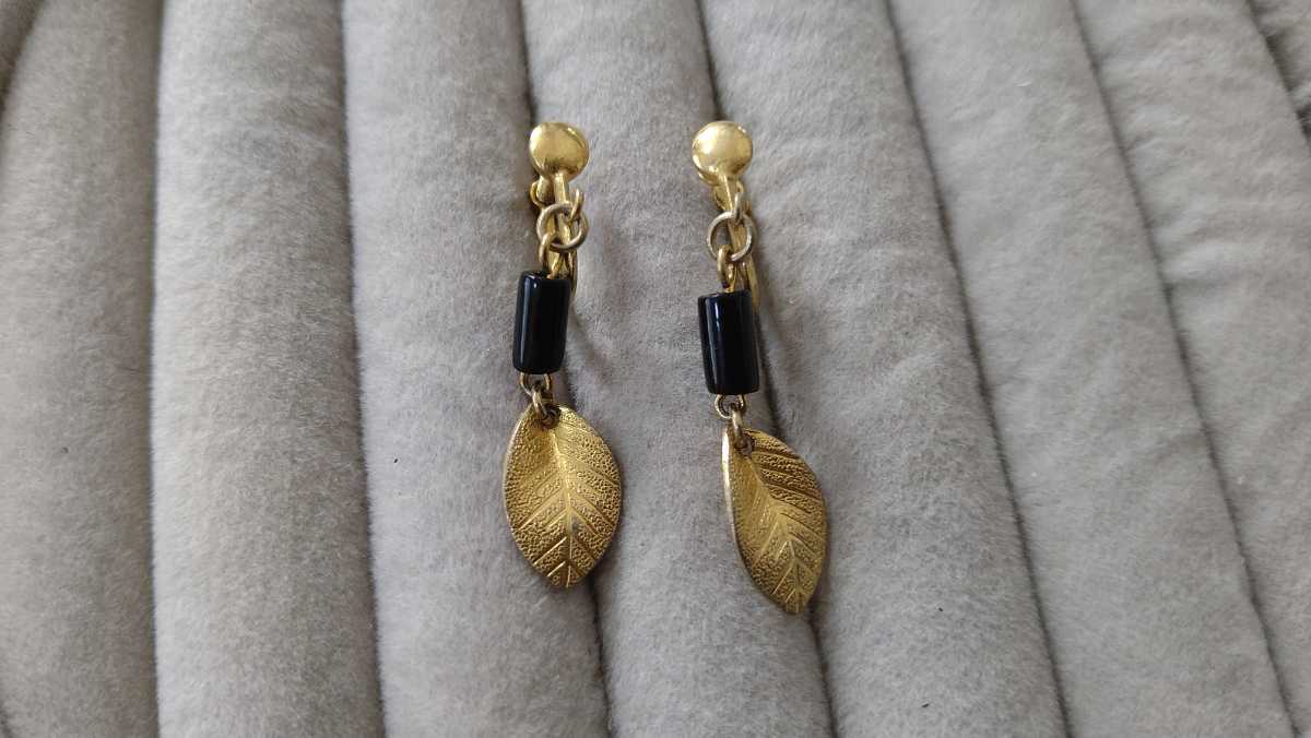 - □ゴールドカラーリーフ×黒ビーズ・揺れるイヤリング□