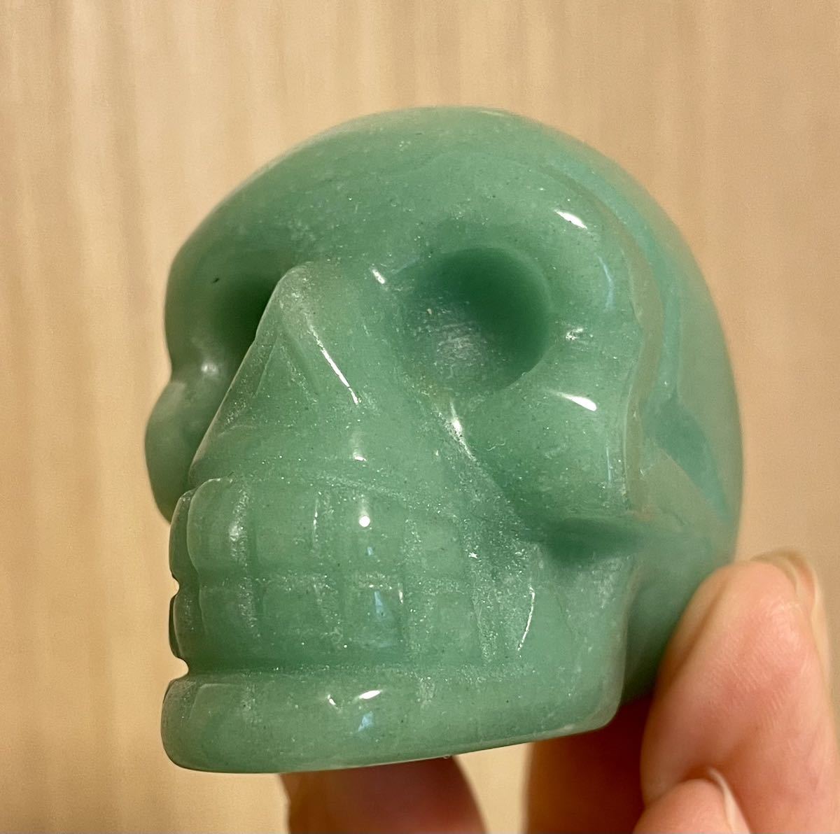 - アベンチュリン スカル 髑髏 骸骨 置物インテリア パワーストーン 幸運 ラッキー 天然石 魔除 お守 グリーン 小物 雑貨グッズ