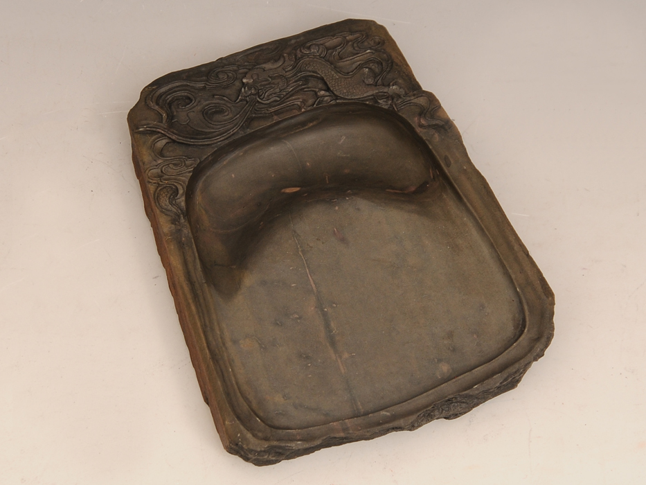 - 端渓 硯 雲龍文 重さ:445g 専用木製ケース 書道具 文房具 唐物 古玩 中国美術 書画 絵画 b5698s
