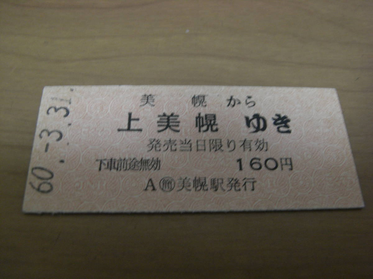 - 相生線 旭通仮乗降場の硬券乗車券 美幌から上美幌ゆき 昭和60年3月31日 A簡 美幌駅発行 ●営業最終日