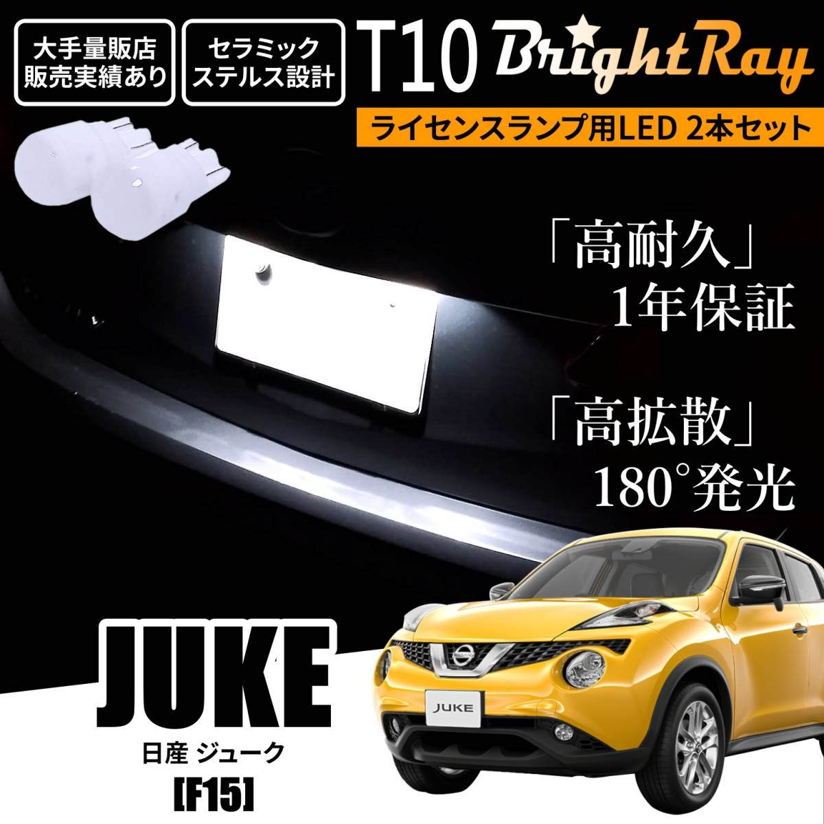- 送料無料 日産 ジューク F15 BrightRay T10 LED バルブ 1年保証 ナンバー灯 ライセンスランプ ウェッジ球 ホワイト