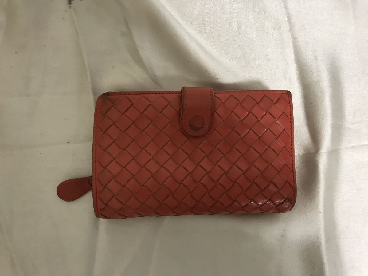 - 本物ボッテガヴェネタBOTTEGA VENETA本革レザー編み込み二つ折り中財布サイフ札入れメンズレディースビジネス旅行ピンクイタリア製