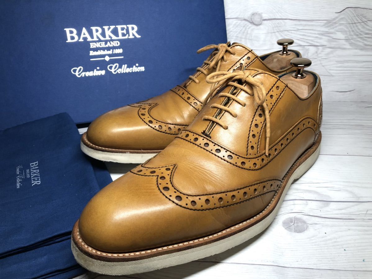 > 【即決】◆箱付◆ 英国製 BARKER メンズ UK8.5 27cm程度 バーカー ウイングチップ キャメル 茶 革靴 レザーシューズ ビジネス くつ