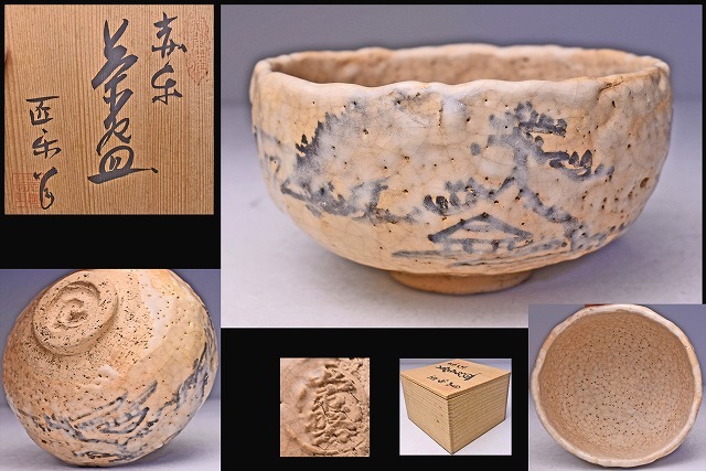 - 常然 在印 か ★ 白楽茶碗 ★ 合わせ箱 ★ 山水画 ★ 手びねり ★ 数寄者か 作者不明 ★ 産地不明 ★ 落款あり ★ 良い茶碗 ★ 低下度焼成