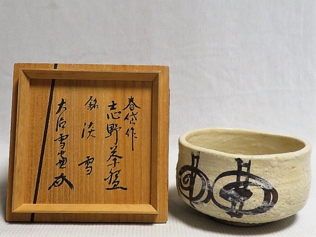 - 茶道具 志野茶碗 春岱作 銘 淡雪 雪窓書付 A32-0227