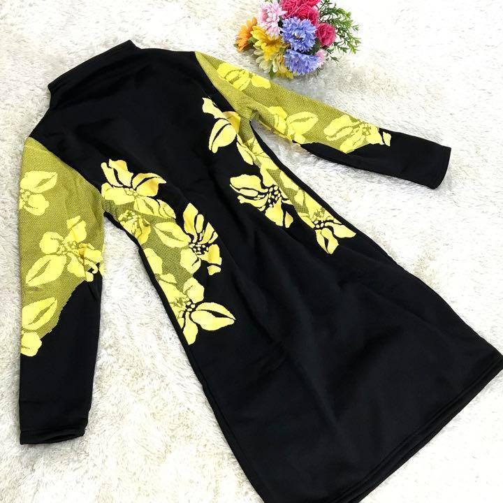 - 大判花柄プリント★あったか フリース ワンピース ★フリーサイズ★ブラック