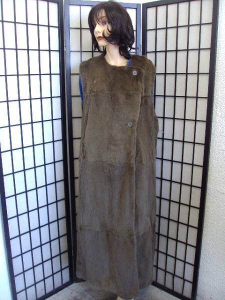 - グリーン シェアード・ラビット毛皮ロングベスト サイズ8-10