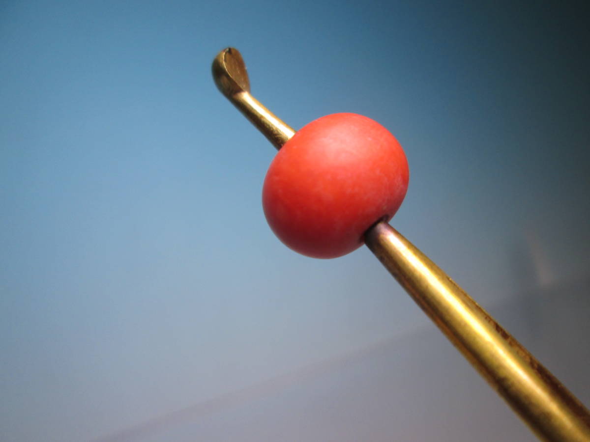 - ☆アンティーク・鍍金 本珊瑚玉 1,25cmx9mm のかんざし 10,25g 共ケース付
