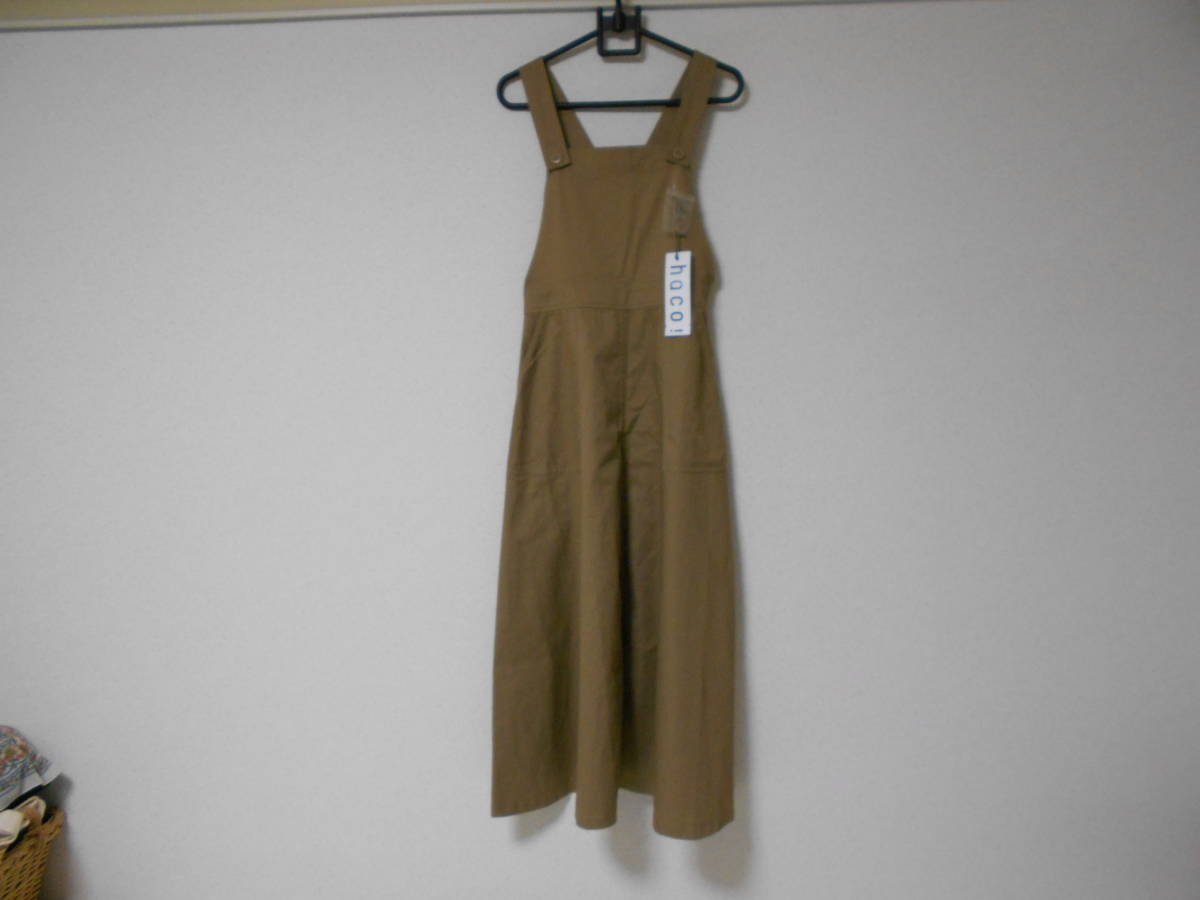 - フェリシモ☆haco!☆カーキベージュのAラインロングスカートのオーバーオールスカート☆丈長フレアスカートのサロペット☆M☆タグ付き新品