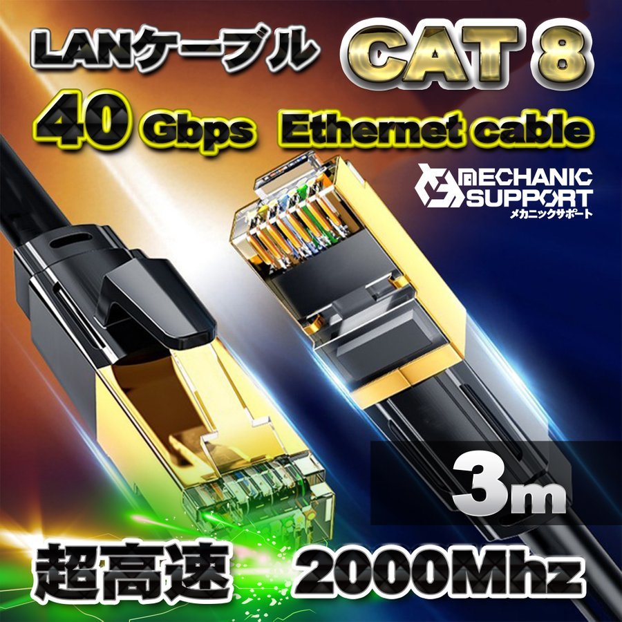 - 【3m】 超高速 CAT8 フラット LANケーブル 26AWG 40Gbps 2000MHz カテゴリー8 インターネット ツメ折れ防止 PS5 Xbox等に対応