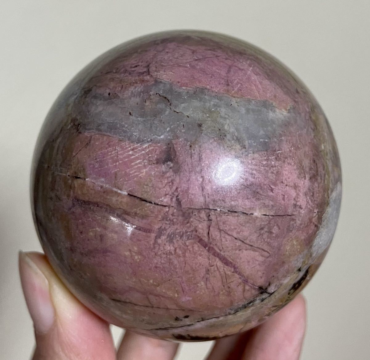 - ロードナイト 丸玉 スフィア 003 輝石 マンガン シリカ フラワー 恋愛運 パワーストーン ピンク 置物インテリア お花 お守 ラッキー ピンク