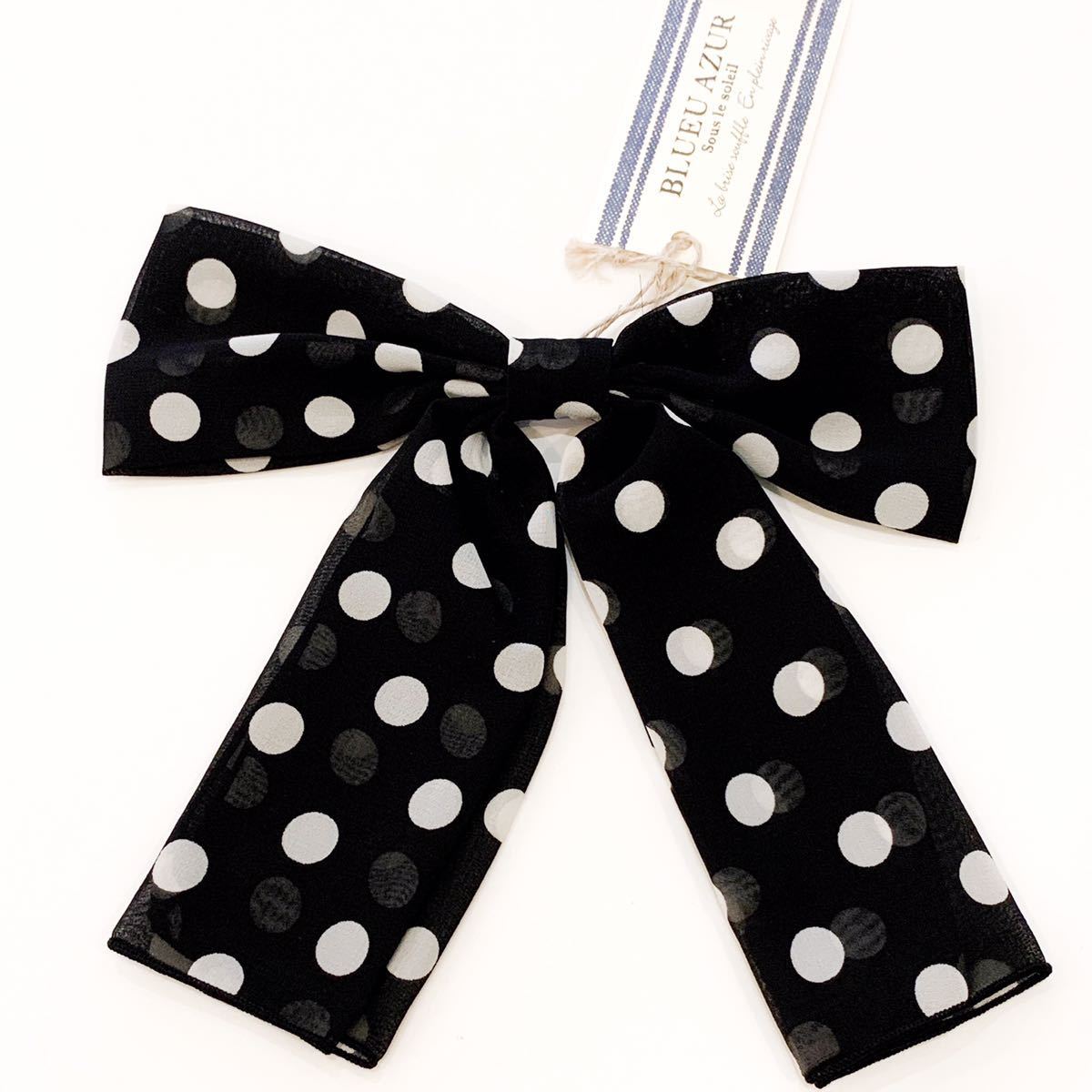 > 【新品未使用】BLUEU AZUR ブルーアズール リボン ブローチ 安全ピン ブラック 黒 ドット 水玉 オケージョン フォーマル 日本製 かわいい