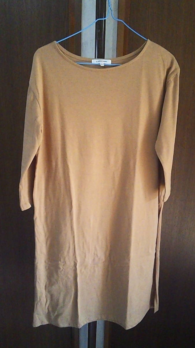 - ..h05 レディース 半袖Tシャツ ロング チュニック ワンピース Mサイズ グローバルワーク 中古 良品 キャメル