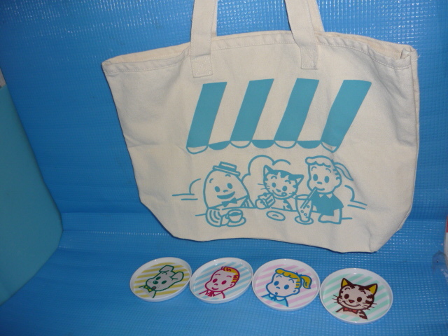 - A非売品★未使用★OSAMU GOODS オサムグッズ コットン混素材BIGトートバッグとおうちカフェプレートx4種