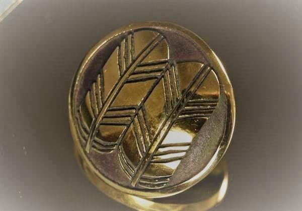 - 家紋コンチョ★大サイズ★真鍮★丸に並び鷹の羽★和柄コンチョ★戦国武将