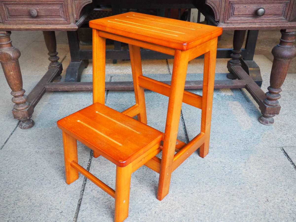 - 【無垢材の2段式踏み台】格納式ステップ昭和レトロ木製椅子ラダー腰掛花台ガーデニング骨董古民具自在鉤インテリア観葉植物ガーデニング