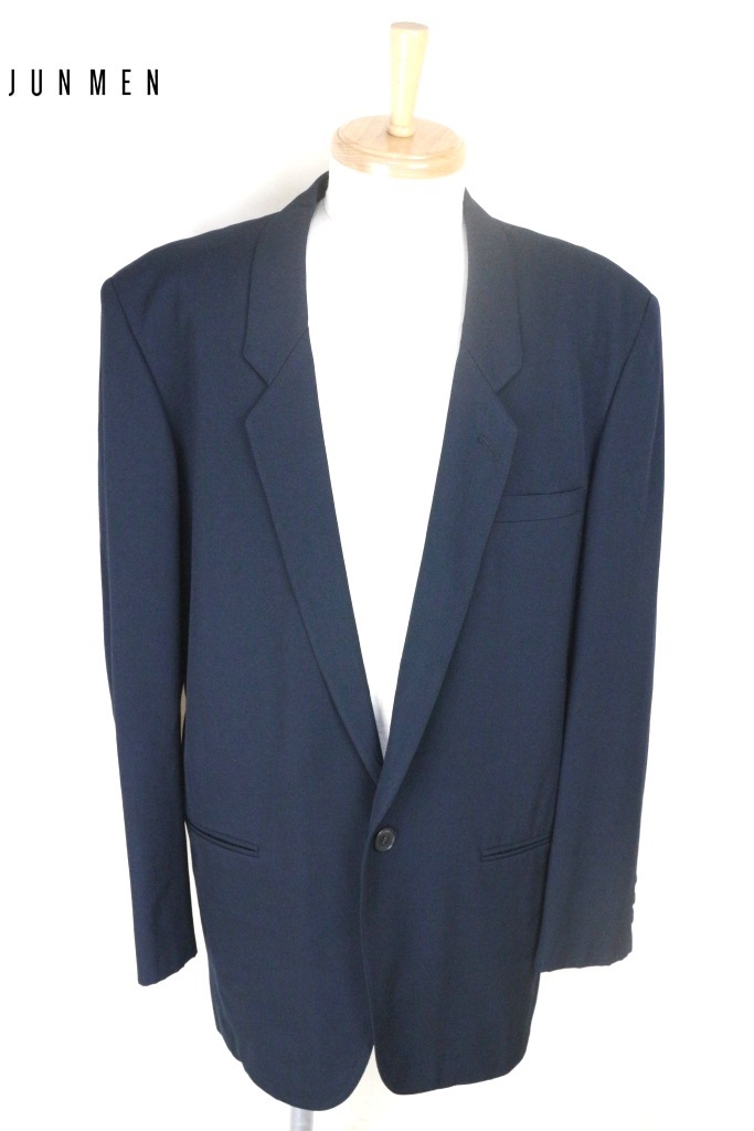 - 80-90S ヴィンテージ■クリーニング済■JUNMEN NOUVEAU MODEL 秋冬 1つ釦ナロージャケット L ネイビー 日本製 ジュンメン DCブランド 年代