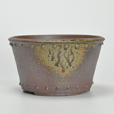 - 盆栽鉢 作家鉢 6.5号 鋲打丸鉢 伊藤光伸作 幅19.5cm×高さ11cm 陶器