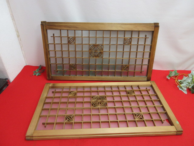 > 14M6206アンティーク引扉 窓 引戸 建具 2枚 昭和型板ガラス・結晶ガラス・障子用ガラス・ぼかしガラス・山水ガラス 京町屋 古民家 DIY