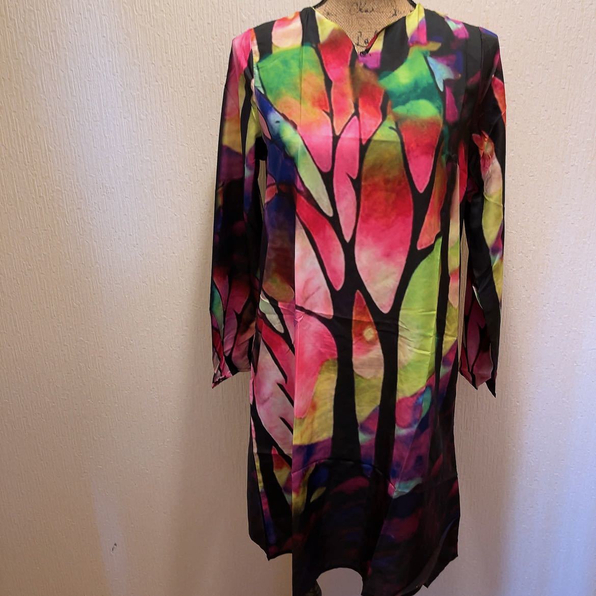 - 新品★カラフル★ステンドグラス風★公園柄ワンピース★ホームウエア★M長袖ワンピース