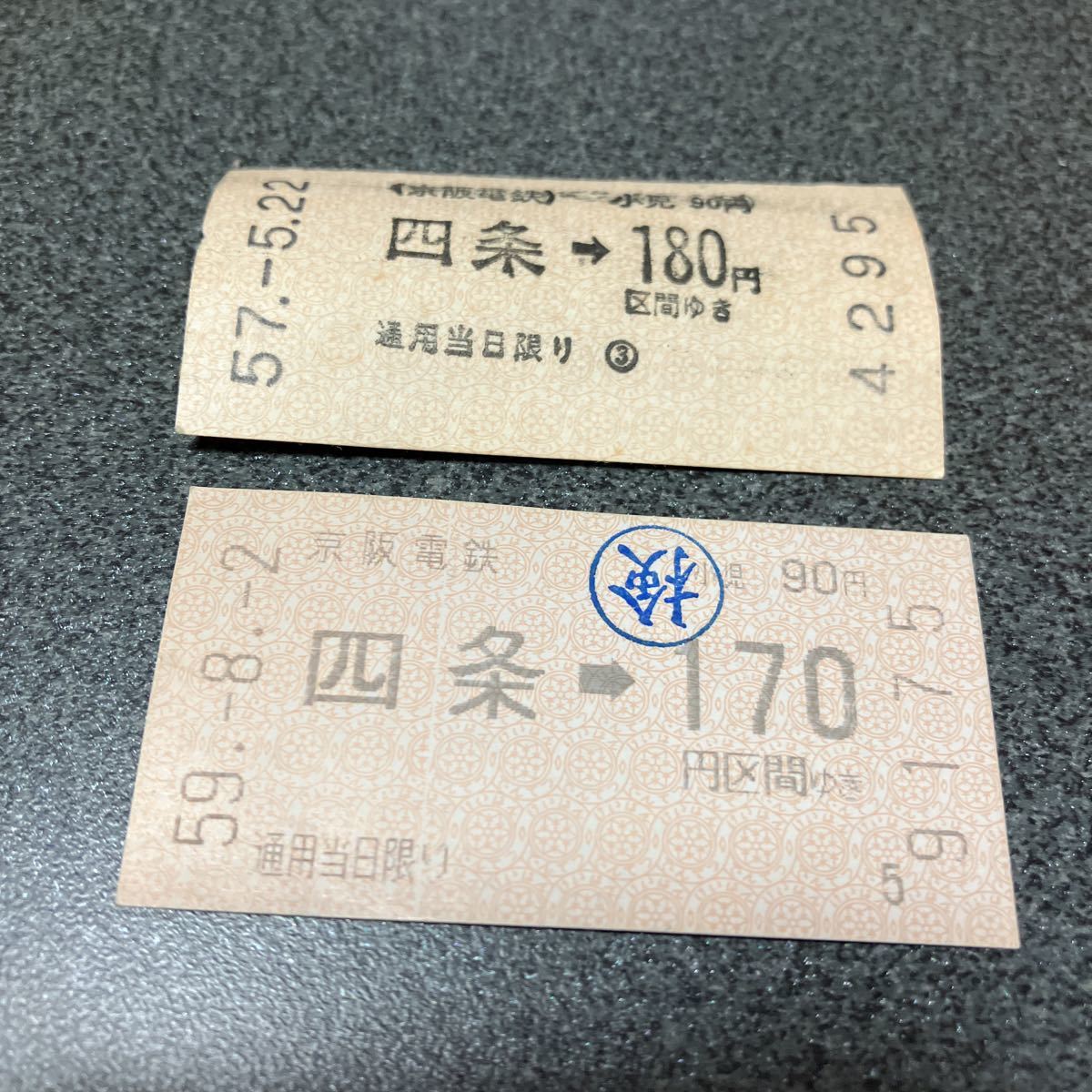- 京阪電鉄 四条 切符 乗車券 昭和 2枚セット