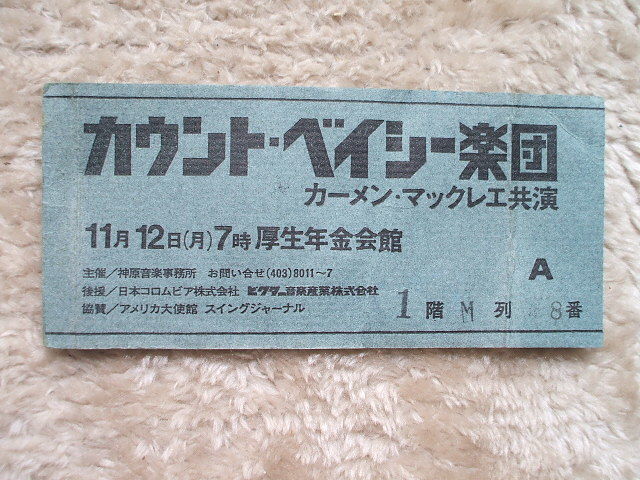 - チケット半券「カウント・ベイシー楽団1973年11月12日 カーメン・マックレエ共演 厚生年金会館」おまけカセットつき