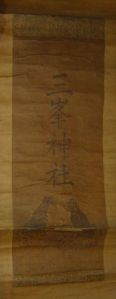 - 稀少 アンティーク 三峰山 三峯神社 秩父三社 狼 オオカミ 大口真神 お犬さま 守護神 神使 三峯講 御眷属信仰 護符 神画 紙本 掛軸 神社