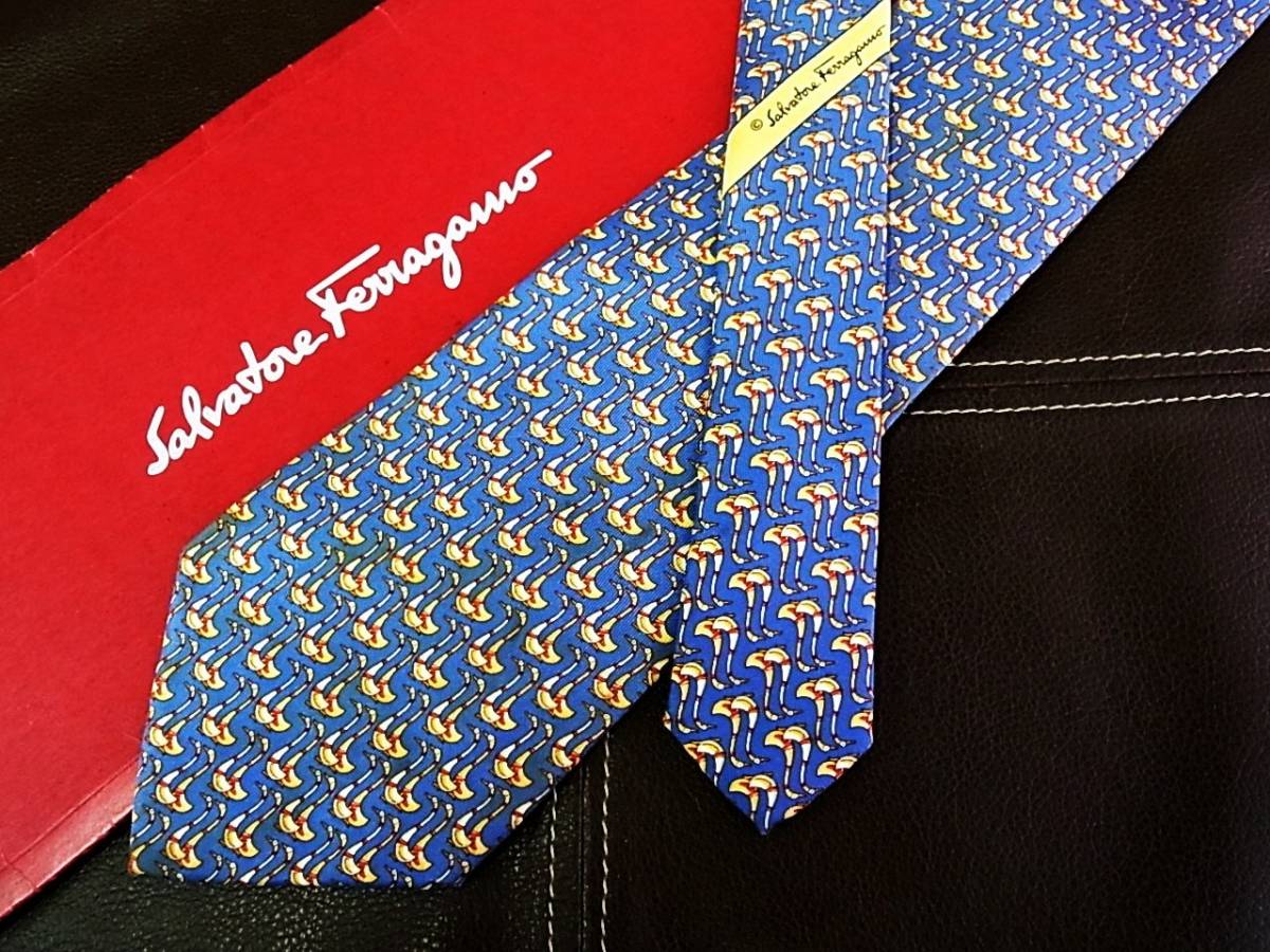 - 【在庫処分セール】5-7169z■フェラガモ【アヒル・鳥】ネクタイ