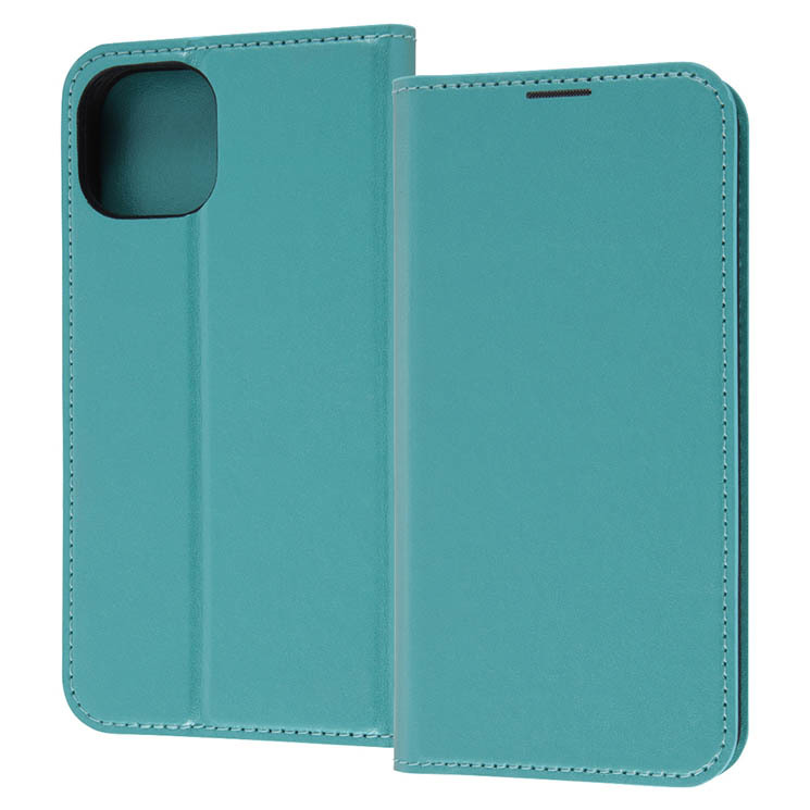 > iPhone 14 13 手帳型 スマホ ケース カバー シャイニー ブルー ツヤ あり PU レザー 耐衝撃 カード ポケット スタンド