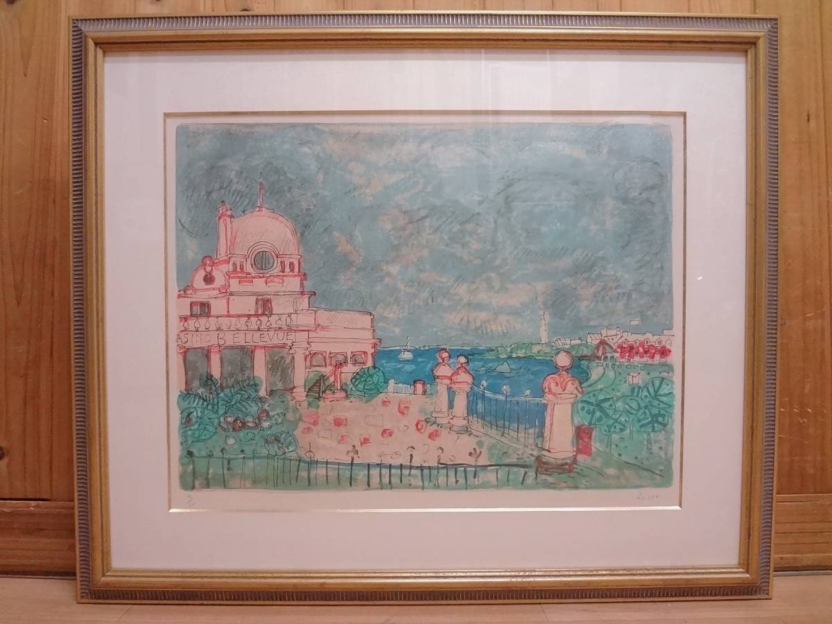 - ポール・アイズピリ ビアリッツのカジノ ベルヴュ フランス 海辺の町 リトグラフ 本人サイン 絵画 版画 真作